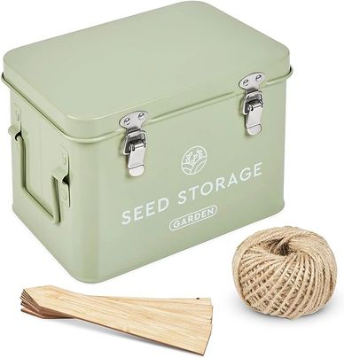 Seed Storage Box – Metal Seed Packet Organizer with Garden String and Bamboo Plant Labels. Seed Container Storage Delivering Complete Seed Saving Organization for Every Garden Lover