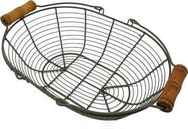 CVHOMEDECO. Oval Metal Wire Egg Basket Wire Basket with Wooden Handle Country Vintage Style Storage Basket. Rusty, 13 X 9 X 3-1/2 Inch