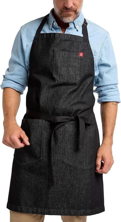 hedley & bennett Essential Apron - Professional Chef Apron with Pockets & Adjustable Bib Strap for Cooking & Grilling - Kitchen Aprons for Men & Women - 12oz 100% Cotton Canvas Fabric - Abalone Black